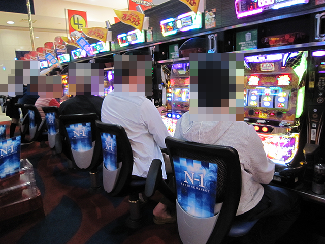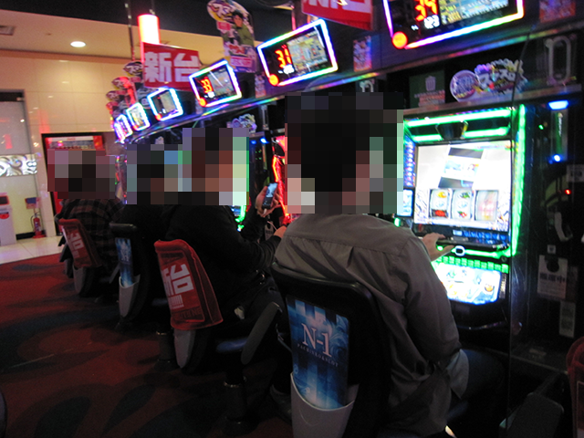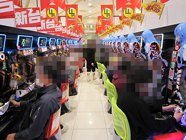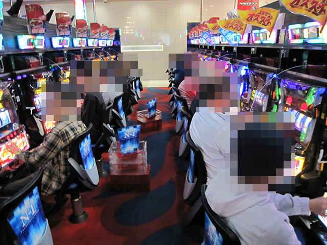 店内をみてみると、パチンコとパチスロの両方がにぎやかなムード。