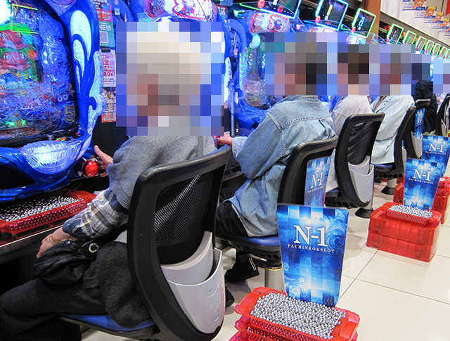 17時過ぎには、「P大海物語5」で6箱以上、「Pスーパー海物語 IN 沖縄5」で9箱以上の持ち玉を確認した。