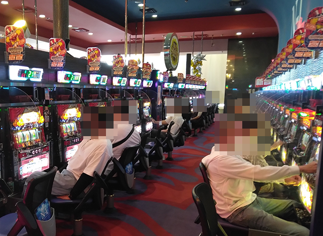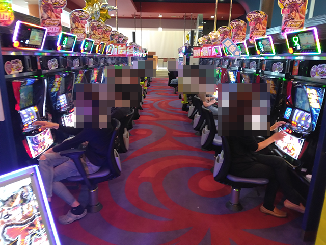 パチスロをみてみると、「スマスロ北斗の拳」に楽しげなプレイヤーが多数。