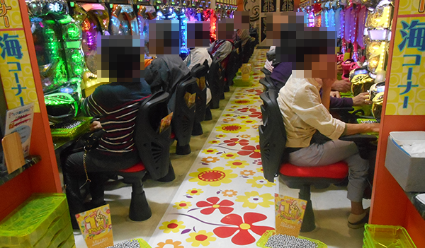 パチンココーナーにも楽しそうに遊技をおこなっていたプレイヤーが多い。とくに、1円パチンコの稼働率が高く、海物語シリーズが人気。