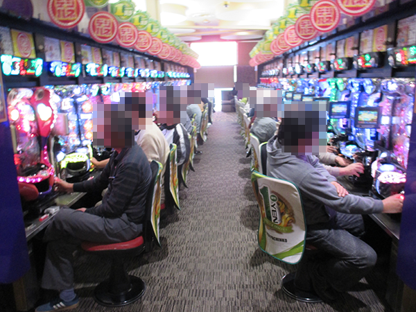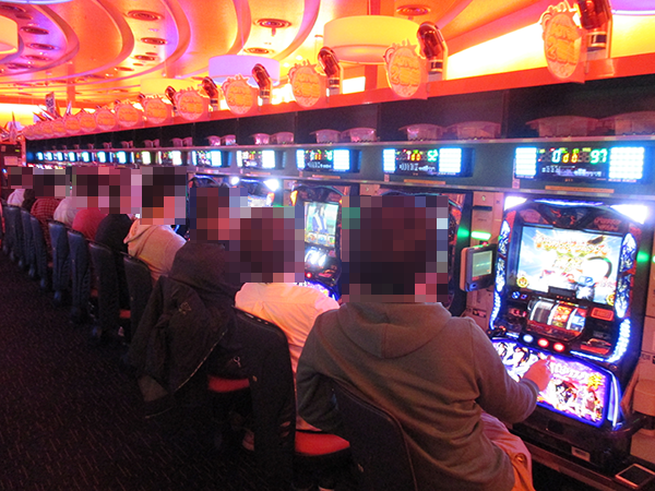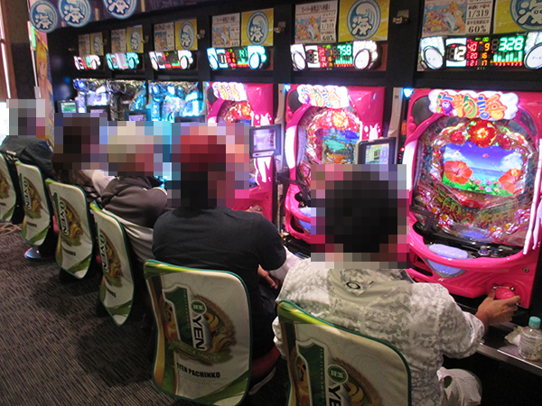14時頃のパチスロをみると、「バジリスク~甲賀忍法帖~絆」や「ミリオンゴッド-神々の凱旋-」が好評。キラキラとした笑顔で遊技をおこなっているプレイヤーが多く、大きく盛り上がっていた。