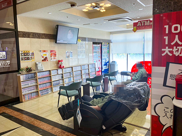 レストスペースにはテレビ・漫画本・マッサージチェアが用意されており、利用するプレイヤーたちは皆、リフレッシュできていたようだ。