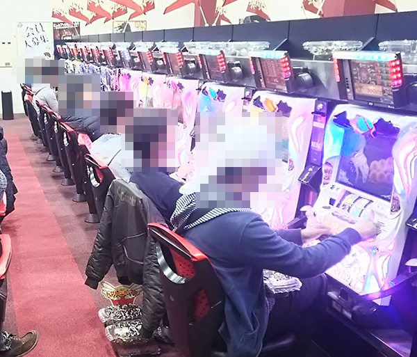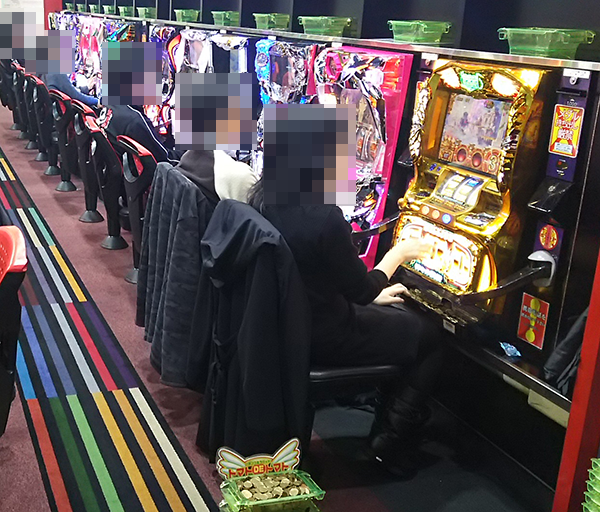 午後の20円パチスロでは、「ミリオンゴッド-神々の凱旋-」と「スーパービンゴネオ」に機種の性能を最大限まで引き出しているといったプレイヤーを発見。明るい表情からは、充実した時間を過ごせていることも伝わってきた。