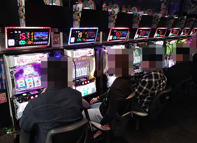 「パチスロ甲鉄城のカバネリ」にも遊技を満喫しているような姿があり、にぎわいは大きい。