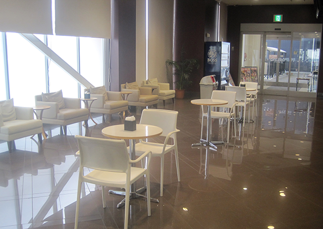 入り口付近には、落ち着いた雰囲気のレストスペースが完備されている。外からの光が入る明るい空間となっており、清潔感もバッチリだ。