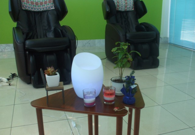 こまめな清掃で清潔に保たれたホール、広々したレストスペースが何か所もあった。マッサージチェアを完備したレストスペースでは、アロマの香りで爽やかにリラックス。
