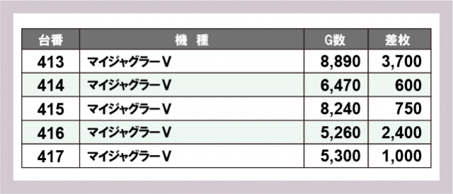 『マイジャグラーⅤ』には横並びで優秀台が!?