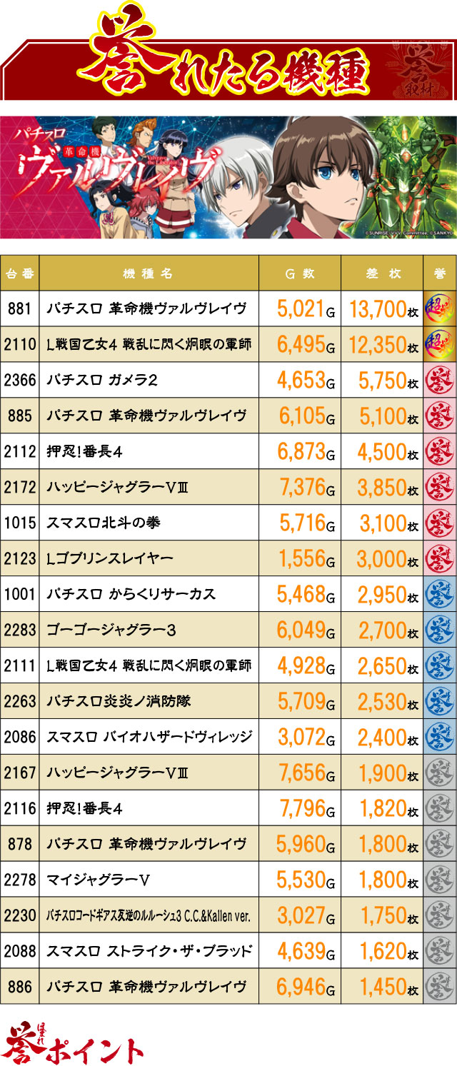 4日連続での誉取材、そして4日連続で10,000枚オーバーが誕生!さすがに全体的な誉マークの数は前日よりも落ち着きを見せたが、それでも十分な数の誉レコードが生まれていたようだ。