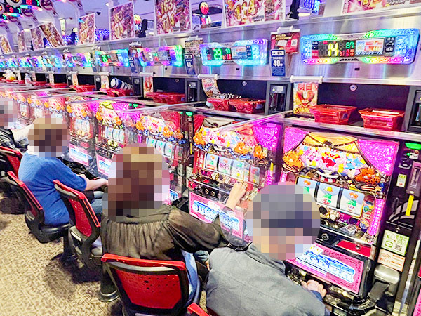 店内では貸し玉料金を問わず様々な機種で、心ゆくまで楽しむプレイヤーの姿が見られた。