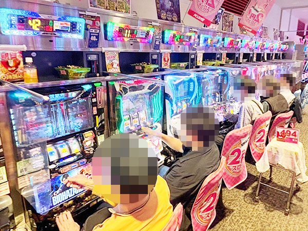 5円・2円と2種類用意された低貸し玉パチスロもそれぞれ高稼働。なかでも2円パチスロの盛り上がりが大きく、プレイヤーの嬉しそうな表情を多数確認している。