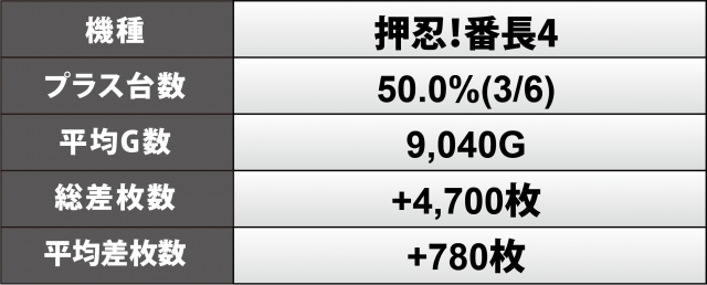 後ほど取り上げる6機種以外の好調台としては、『スマスロバジリスク~甲賀忍法帖~絆2 天膳 BLACK EDITION』で+9千2百枚弱&+6千2百枚超が1台ずつ、『チバリヨ2』で+7千7百枚超&+6千4百枚超が1台ずつ、『沖ドキ!GOLD-30』に+7千枚弱、『スマスロモンキーターンⅤ』に+6千7百枚超と、スマスロ機に飛び抜けた数値が相次いだ。