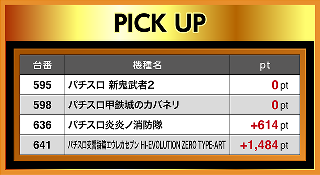 『パチスロ交響詩篇エウレカセブン HI-EVOLUTION ZERO TYPE-ART』の641番台は+1,500ptクラスとなった。