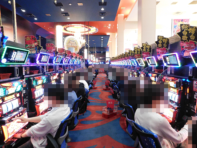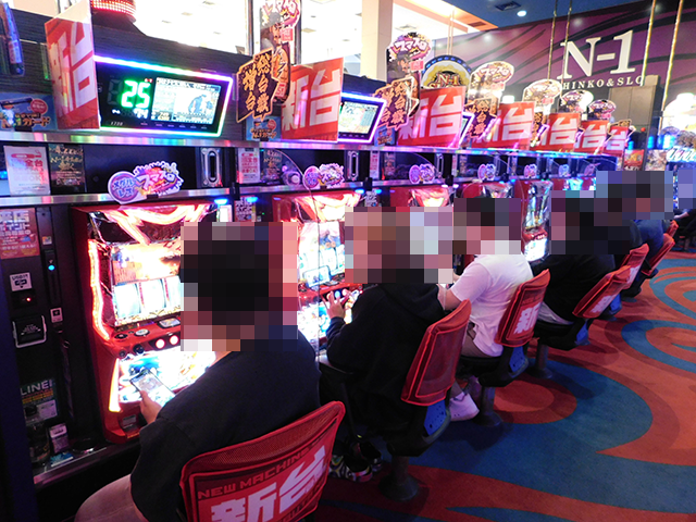 ほとんどの台が埋まるほどに人気があり、楽しげな様子のプレイヤーも多い。