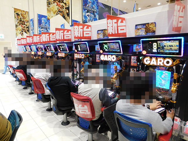 新台の「P牙狼11~冴島大河~XX」も満席に近く、感じられる盛り上がりも大きい。