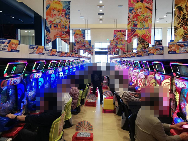 パチンコとパチスロの各シマが活気づいており、店内のあちこちで、プレイヤーの笑顔がみられた。