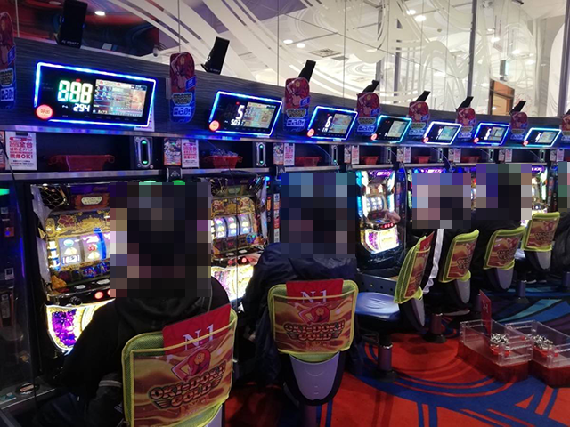 取材時には、設置されている9台がすべて埋まり、複数台で4箱クラスの持ち玉を確認。