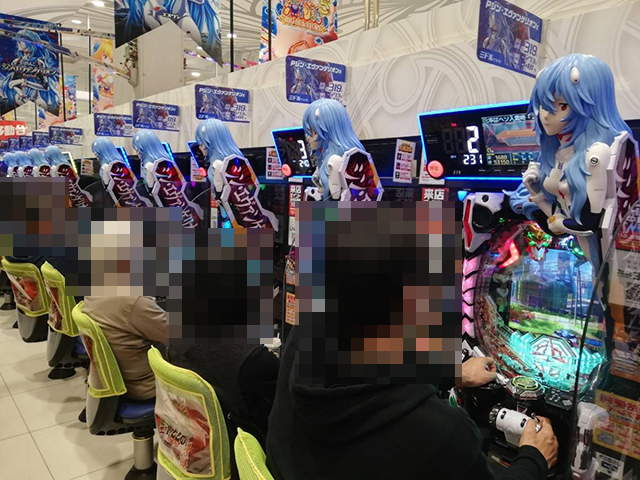 「ぱちんこ シン・エヴァンゲリオン Type レイ」と「P大海物語5」の稼働率も高く、華やかなムードに包まれていた。