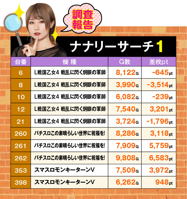 四ッ谷ナナリーが地道な調査によって導き出した4月21日の差枚ランキングを発表!