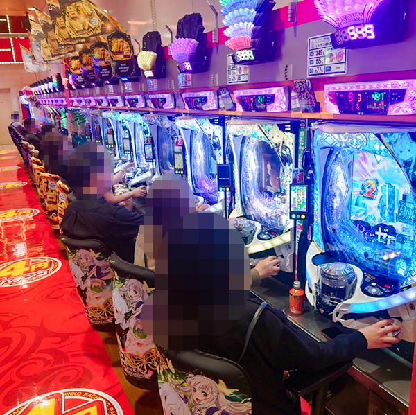 14時ごろの4円パチンコの様子を見ると「e Re:ゼロから始める異世界生活 season2」や「新世紀エヴァンゲリオン〜未来への咆哮〜」が大盛り上がり。機種性能を存分に発揮するプレイヤーを目の当たりにしている。