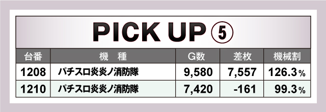 続いては、当日とくに賑わいを見せた6台〜2台並び6箇所を紹介していこう。6箇所全てがトータルプラスで終了しており、そのうち5箇所が平均差枚+2,000枚オーバー! それらのなかでも、1313番台〜1320番台の「L戦国乙女4 戦乱に閃く炯眼の軍師」の6台並びは、4/6台がプラス終了の平均差枚+4,931枚と圧倒的記録をマーク! その他の並びも優秀で、とくに1233番台〜1238番台の「スマスロモンキーターンV」は5台全台がプラスの平均差枚+2,807枚とこちらも素晴らしい結果を残していた!