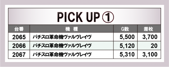 続いて、『パチスロ革命機ヴァルヴレイヴ』『押忍!番長4』『マイジャグラーⅤ』など人気機種を中心に横並び好況スポットが発生。高い稼働に加えて熱量も噴出していたことから、ファンの満足度が高いエリアになったのは確かだ。