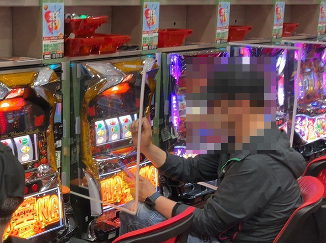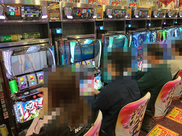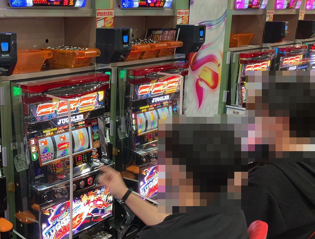 「ファンキージャグラー2」にも、2箱や1箱の持ち玉で遊技をおこなっている姿があった。