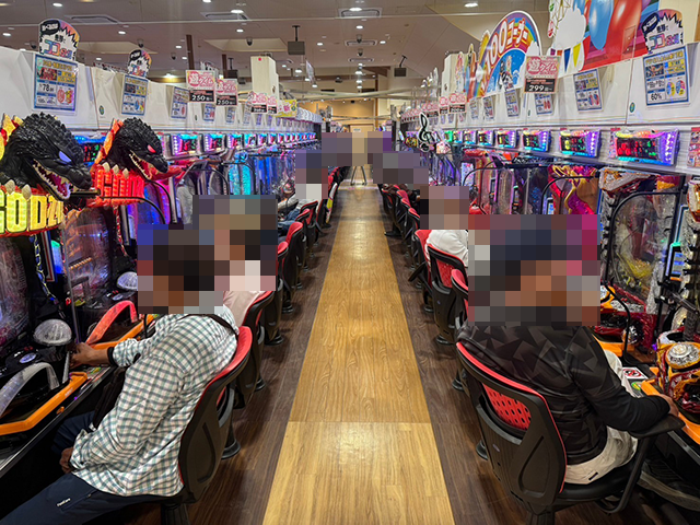 「PA大海物語5 Withアグネス・ラム」をはじめ、さまざまな機種に楽しそうな光景が広がっていた。