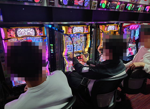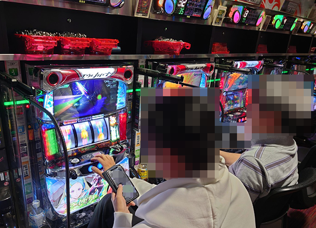 楽しそうなプレイヤーは、『L主役は銭形4』や『パチスロ交響詩篇エウレカセブン HI-EVOLUTION ZERO TYPE-ART』などでも確認。