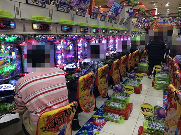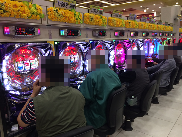 4円パチンコで、ひときわにぎわっていたのが「CRスーパー海物語 IN JAPAN」。笑みを浮かべているプレイヤーが多く、シマ全体が華やかな雰囲気に包まれていた。