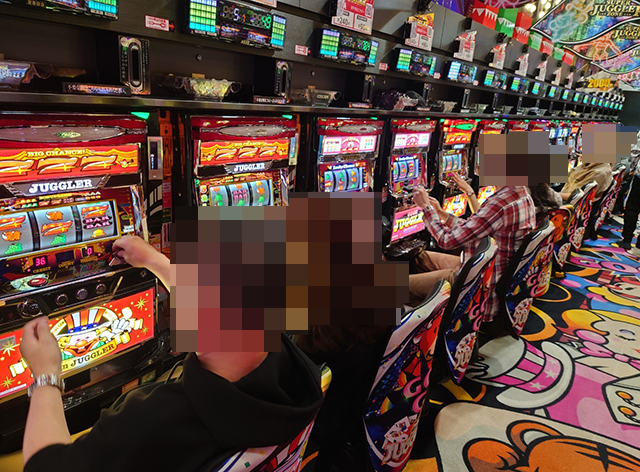 『スマスロ北斗の拳』も空き台は少なく、遊技を満喫しているような姿が多い。