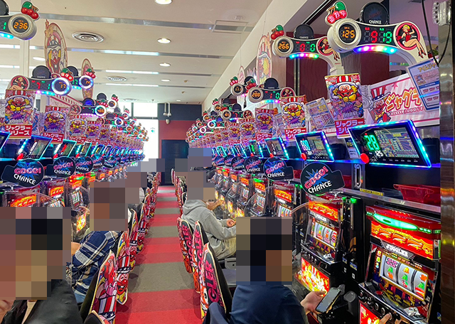朝イチから110名以上のプレイヤーが来店していたホールでは、さまざまな機種が満席となっていた。