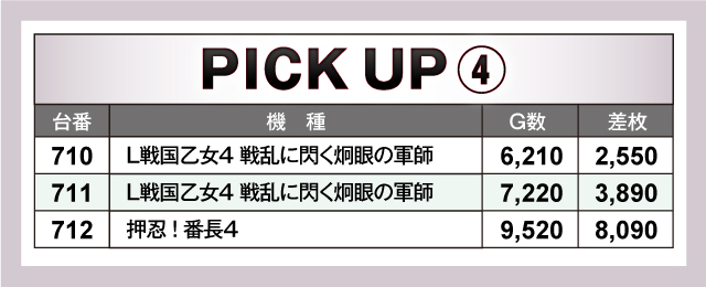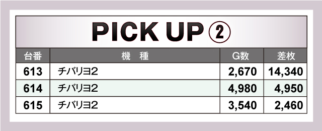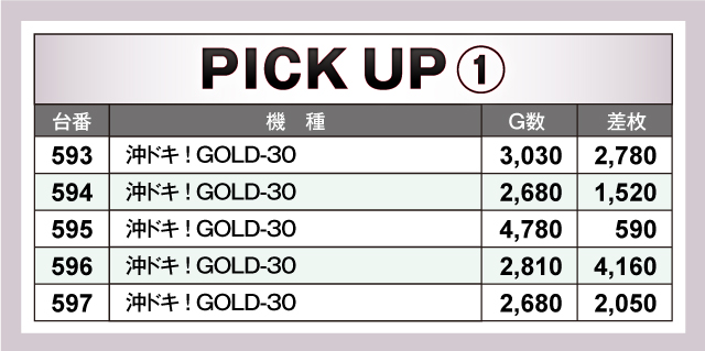 『沖ドキ!GOLD-30』『チバリヨ2』『L南国育ち』『L戦国乙女4戦乱に閃く炯眼の軍師』『押忍!番長4』など、人気機種から横並びの好況スポットを形成。その中でも突出して目立っていたのが『チバリヨ2』で、万枚OVERが発生!明らかな好感触にファンは口角を緩めていたはずだ。