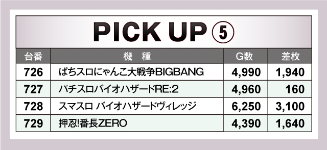 また、少数構成機種も奮起しており、『パチスロバイオハザードRE:2』735番台+4,300枚や『スマスロ バイオハザードヴィレッジ』728番台+3,100枚・『スーパービンゴネオクラシック』736番台+3,910枚といった記録も発生し、幅広い機種の活躍は今後の立ち回りの指標になるかもしれない。