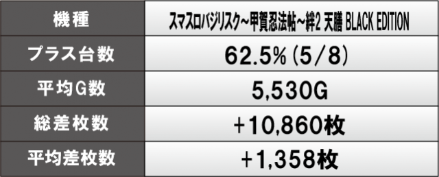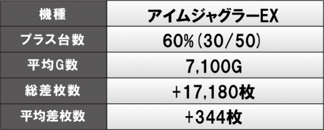 『スマスロバジリスク~甲賀忍法帖~絆2 天膳 BLACK EDITION』はどのAT機よりもポテンシャルが高かったと言える。高い平均回転数をマークするだけでなく、総差枚数もしっかりとプラスを築いているため、ファンの満足度の高さを窺えるばかりだ。そして、ノーマル機からは『アイムジャグラーEX』で総差枚数+17,180枚という記録を打ち立てており、コンスタントにGOGOランプが輝いていたのが想像に容易く、こちらも回転数の多さから手ごたえのほどを感じずにはいられない。