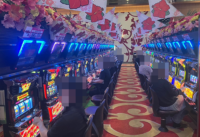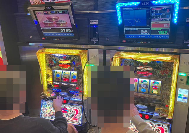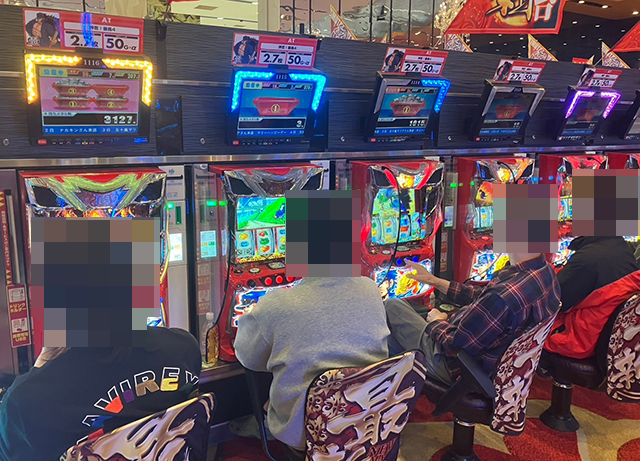「ハナハナホウオウ~天翔~-30」や「キングハナハナ-30」などにじっくりと遊技を満喫しているような姿があり、取材中も稼働率はどんどん上がっていった。