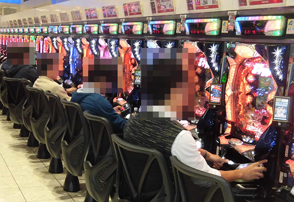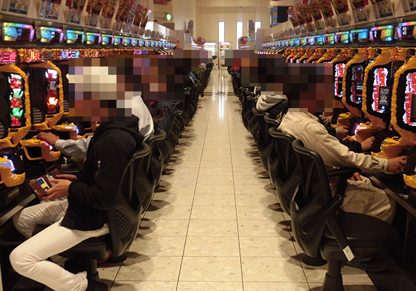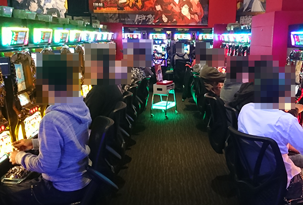14時をまわった頃のホール内では、パチスロの盛り上がりがひときわ目立っていた。
