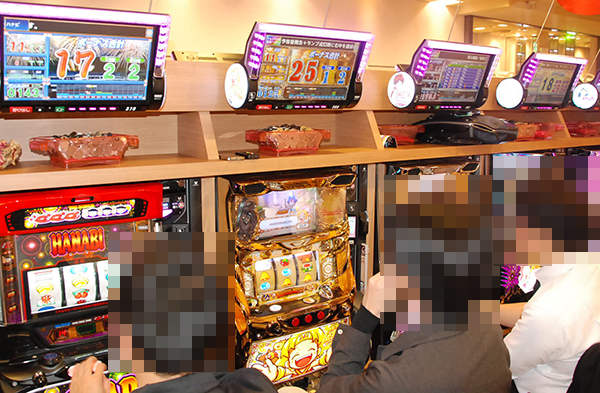 「マイジャグラーⅢ」や「ファンキージャグラー」など、あちこちが活気づいており、プレイヤーの明るい笑顔も目にすることができた。