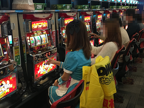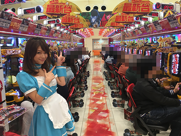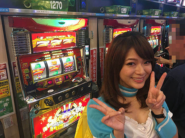「ジャグラーシリーズ」も好評な様子。果生梨ちゃんが実戦していた「沖ドキ!」も明るい雰囲気に包まれてましたよ!