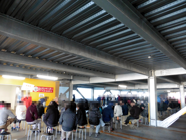 朝イチは若年世代を中心に幅広い年代のプレイヤーが集結。その数およそ230名。オープン後は1円パチンコ、20円パチスロに人気が集中していた。