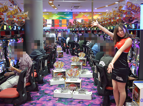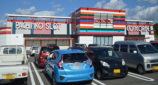 ホールに到着すると、555台を停められる大型の駐車場にはたくさんの車。大勢のプレイヤーが集まり、遊技を楽しんでいることがうかがえた。