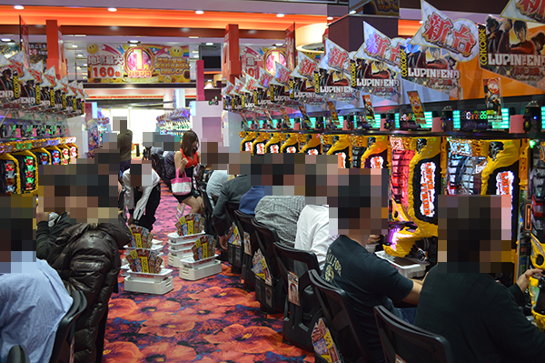 13時をまわった頃のパチンコでは、4円パチンコの「ぱちんこCR真・北斗無双」が稼働と盛り上がりの両方で目立つ存在となっていた。