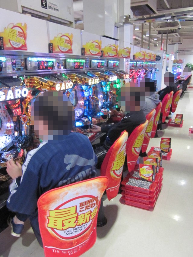 入店早々、パチンコ・スロットにプレイヤーが分散される中、4円パチンココーナーでは「CR牙狼魔戒ノ花〜BEAST OF GOLD ver.〜」が特に人気を集めていた。午後になってもその勢いは衰えることはなく、一帯には微笑ましい光景が広がっていた。