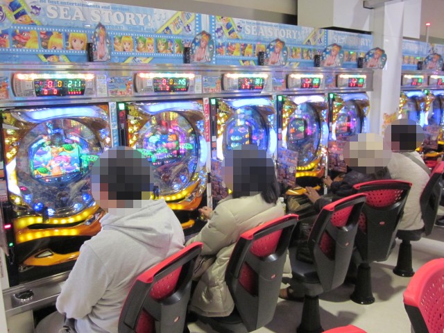 同じく4円パチンコで年配層から高い支持を集めていた海物語シリーズ。なかでも「CRAスーパー海物語IN沖縄2 SAKS」は常に高稼働を続けており、多くのプレイヤーであふれていた。