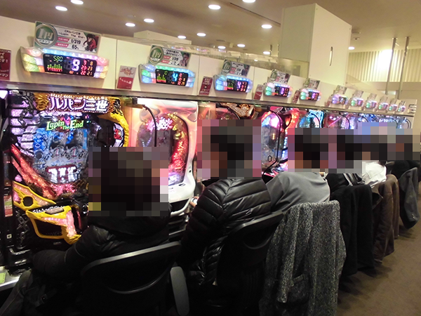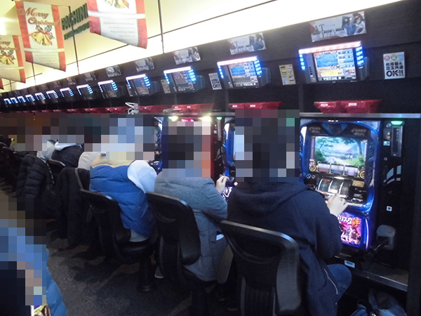 また、パチンコで遊技をはじめる姿も多く、朝イチから大きな活気が感じられた。