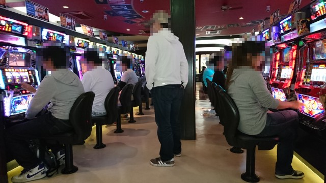 「マイジャグラーⅡ」「ニューアイムジャグラーEX」など多くの機種を揃えたジャグラーコーナーには、満席になるほどのプレイヤーが集まっていた。