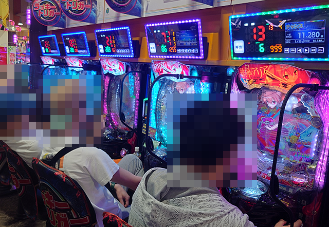 5台が設置されている「P緋弾のアリア~緋緋神降臨~ラッキートリガーVer.」は、満席となるほどに好評。