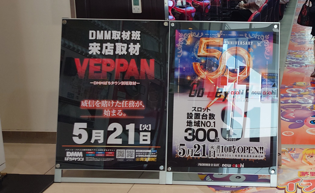 DMMぱちタウン取材班〝別班〟が威信を賭けて執り行う「VEPPAN」が、5月21日に長野県の「ニューアサヒ茅野店」にて実施された。前回は残念ながらマイナス終了と敗北を喫した同店。取材時は、今回こそは勝利を獲得してくれることに期待した大勢のファンたちで店内は活気に溢れていた。その結果は…+7,700枚で終了! 見事勝利を獲得した! ここからは、スロット全300台の詳細と合わせて、当日の盛り上がりをチェックしていこう!