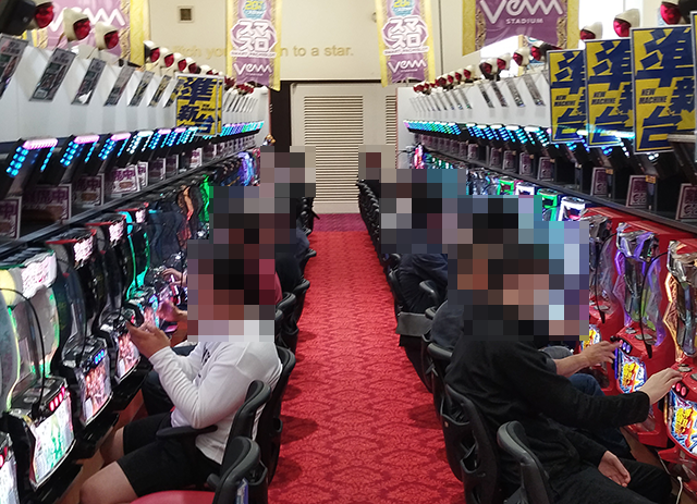 店内をみてみると、スマパチとスマスロの両方がにぎわっており、多くのプレイヤーが楽しそうに遊技をおこなっていた。