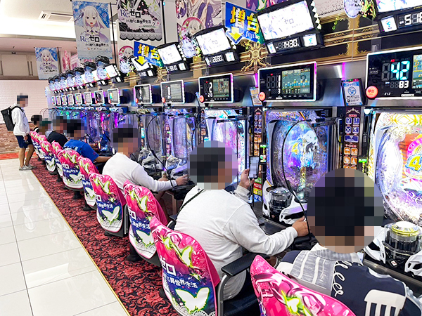 16時ごろの4円パチンコでは「e Re:ゼロから始める異世界生活 season2」や「P牙狼11〜冴島大河〜XX」で好調なプレイヤーが多数見受けられ、時折見せる嬉しそうな表情が印象に残っている。