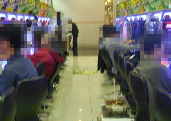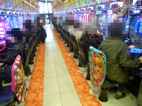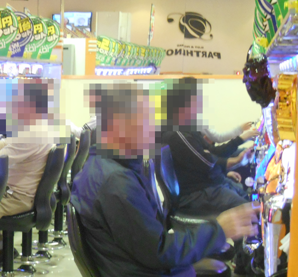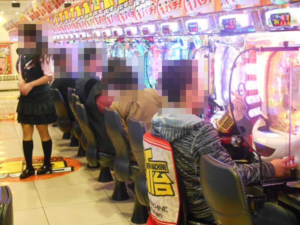 華やかなパフォーマンスを披露する姿は、パチスロコーナーにも多かった。